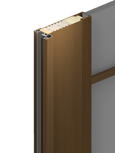 Aluminum astragal with fiberglass cladding are manufactured to match MASTERGRAIN™ door panels.